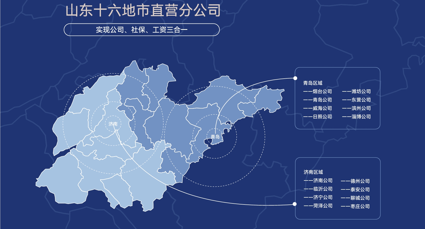 ZONESIN在人力资源行业内率先提出“一地委托服务中国”的全国一体化服务模式,经过多年的发展逐步建立和完善了的全国运营体系,在全国范围内已建立40余家分子公司,优选400余家人力资源供应商建立了战略合作关系,月服务覆盖32个省级行政区、400+服务网络体系。